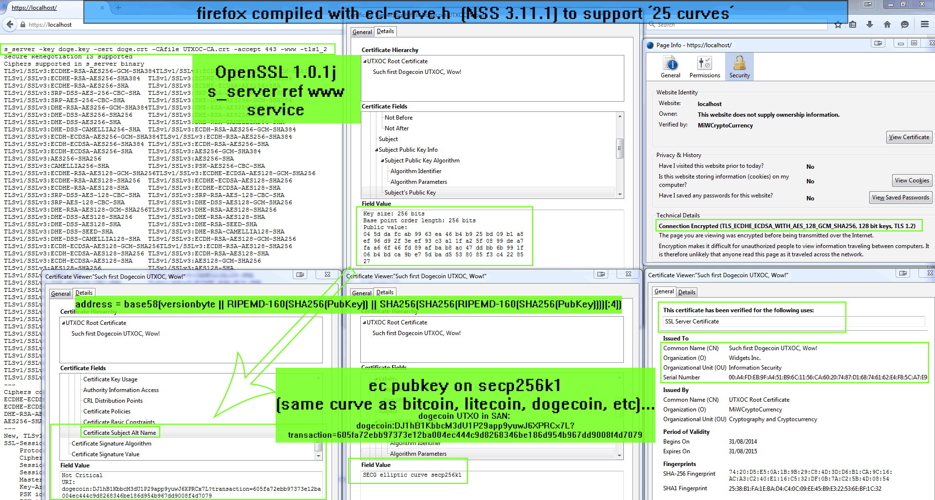 Very interested to hear opinions on this, its a work in progress. Yes, support for secp256k1 is limited in mainstream OS's -- it only works with openssl s_client and s_server currently.